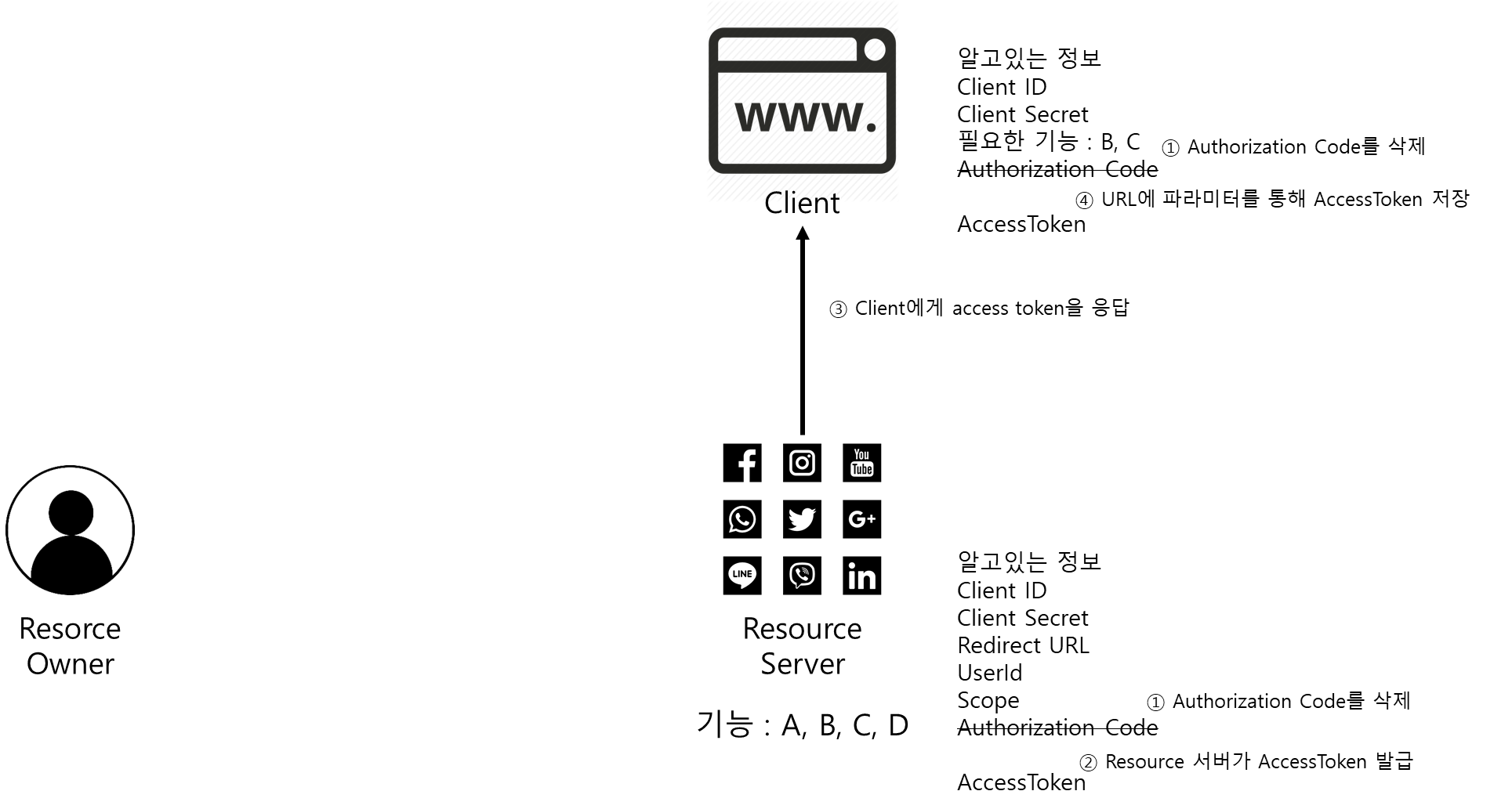 - Resource 서버와 Client는 Authorizaiton Code를 삭제