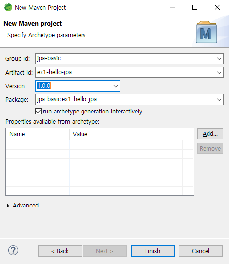 <artifactId>ex1-hello-jpa</artifactId>