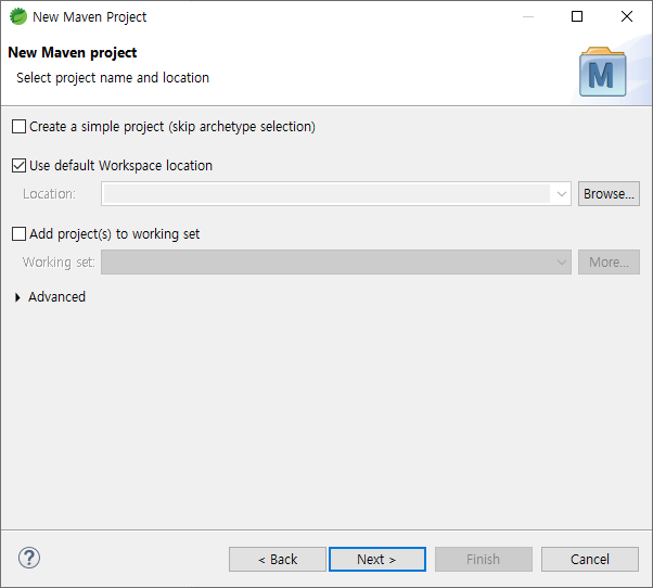 • create a project 클릭 > Maven Project 선택 > Next 클릭