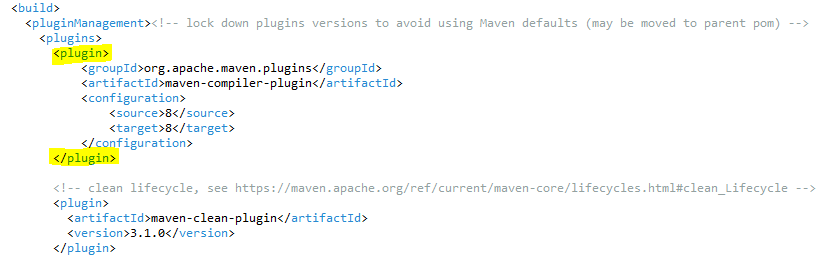 <pluginManagement><!-- lock down plugins versions to avoid using Maven defaults (may be moved to parent pom) -->