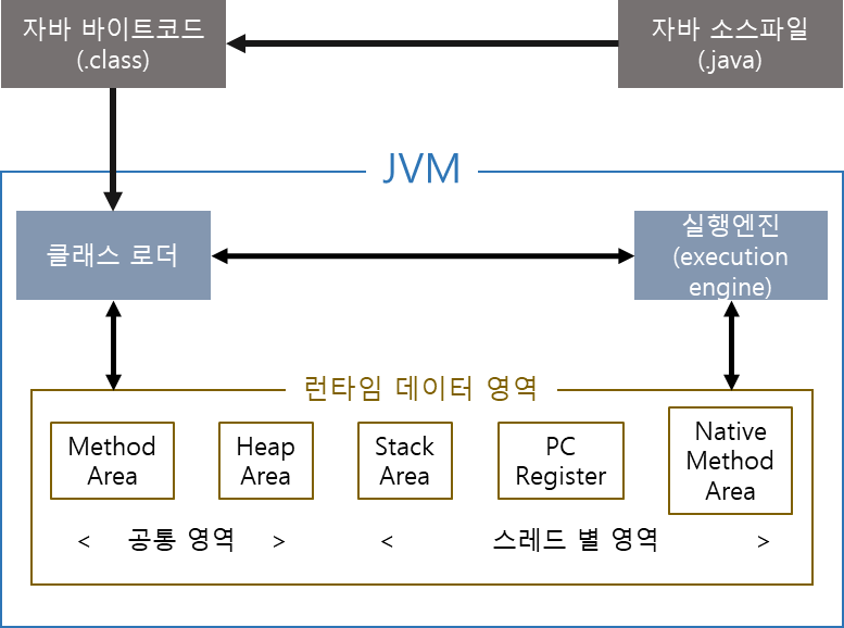 • 자바 바이트 코드 : 클래스코드가 읽을 수 있도록 컴파일된 파일 확장자명은 .class