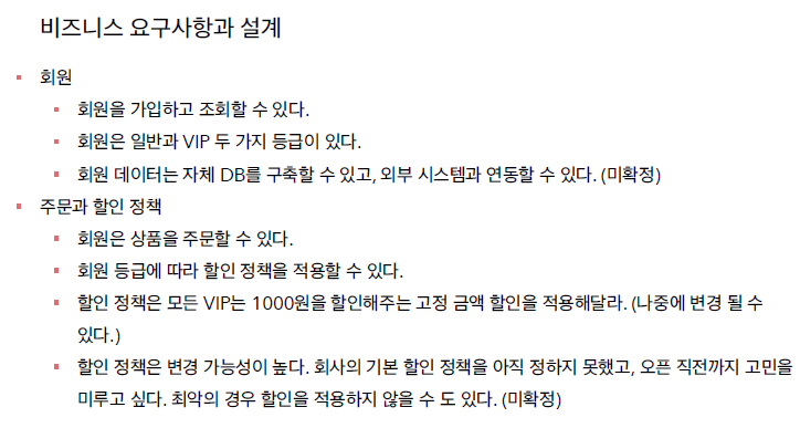 할인 정책에 대한 요구 사항이 명확하지 않아 인터페이스와 구현체를 분리
